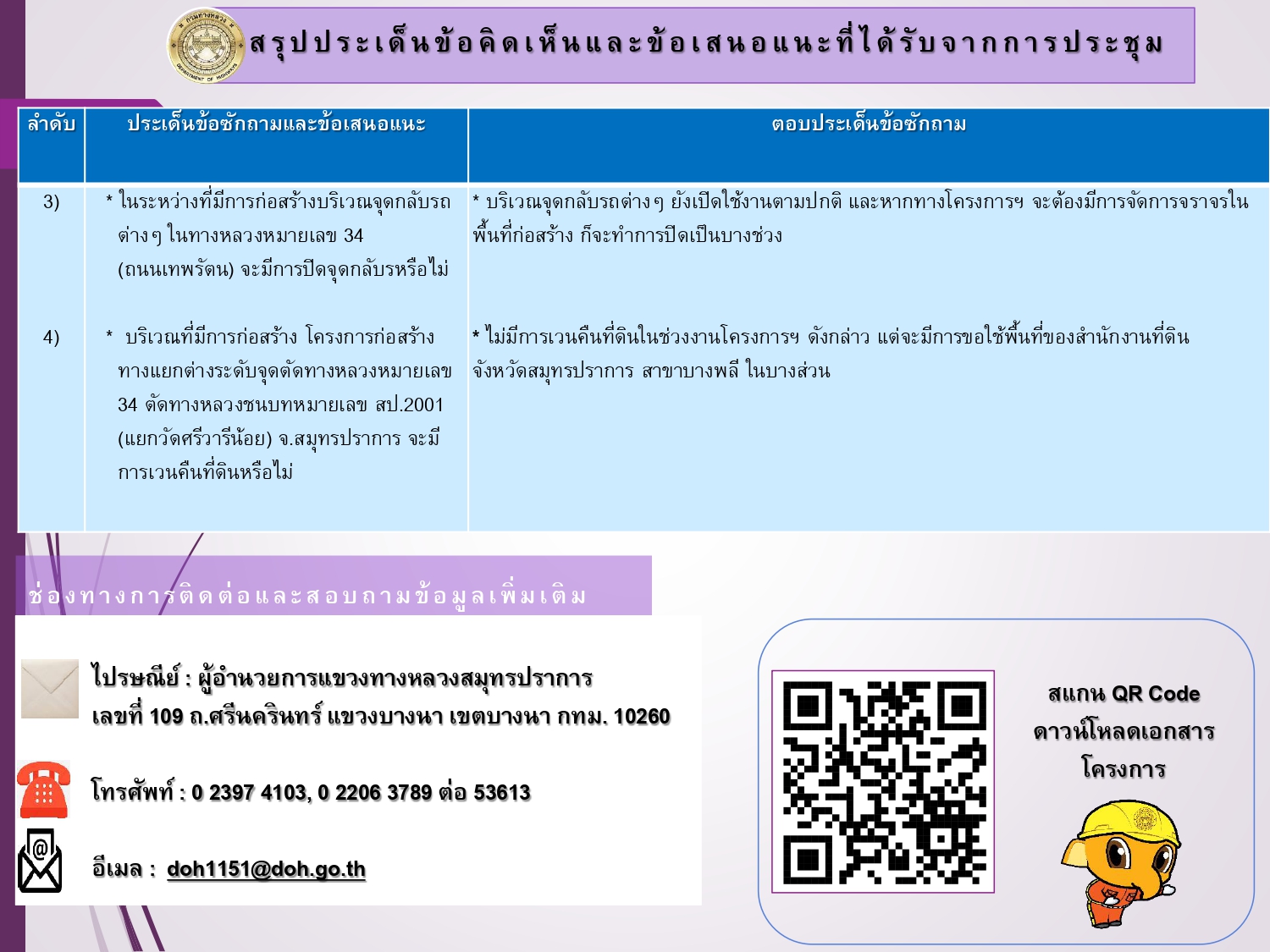 ตามที่ แขวงทางหลวงสมุทรปราการ ได้จัดกิจกรรมการมีส่วนร่วมของประชาชน สำหรับโครงการก่อสร้างทางหลวง ตามแผนงบประมาณประจำปี พ.ศ. 2568 รวมทั้งสิ้น 8 โครงการ ประกอบด้วย
